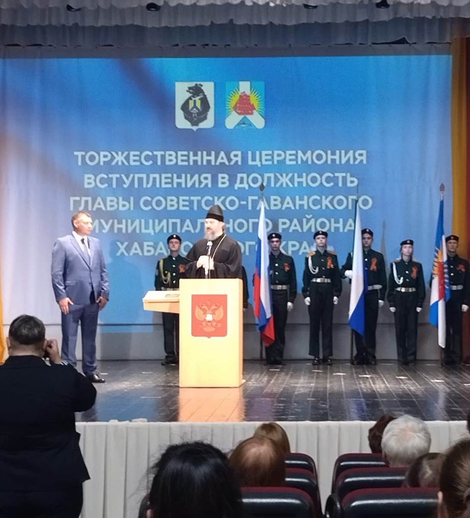 УПРАВЛЯЮЩИЙ ВАНИНСКОЙ ЕПАРХИЕЙ ПРИНЯЛ УЧАСТИЕ В ТОРЖЕСТВЕННОЙ ЦЕРЕМОНИИ ИНАУГУРАЦИИ ИЗБРАННГО ГЛАВЫ СОВЕТСКО-ГАВАНСКОГО РАЙОНА АНДРЕЯ ЧЕРЕПАНОВА