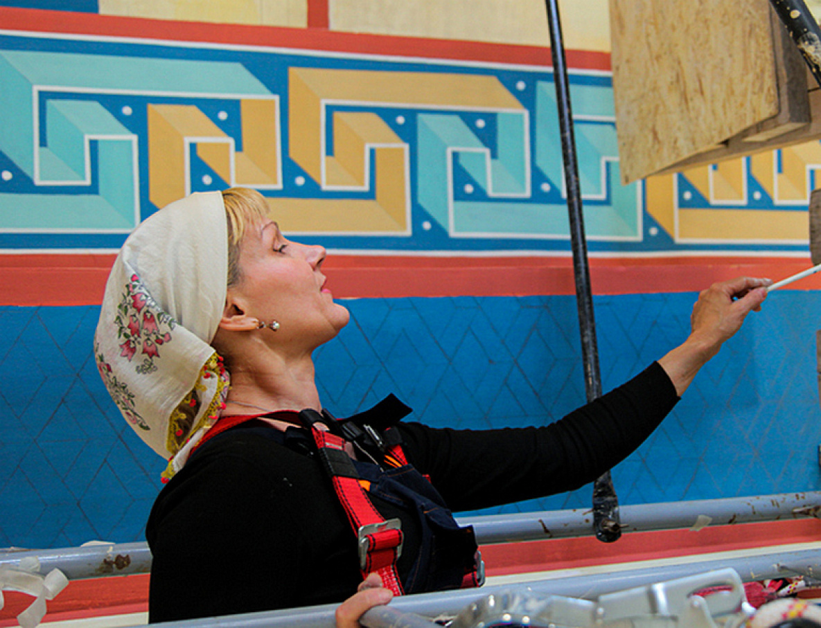 В команде иконописцев большинство женщины. По церковным канонам им запрещён вход в алтарную часть храмов. Но в этом случае было сделано исключение.