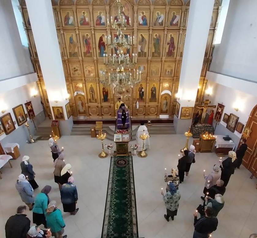 За богослужением Его Преосвященству сослужили протоиерей Всеволод Тютюнников и иеромонах Макарий (Ненашев).