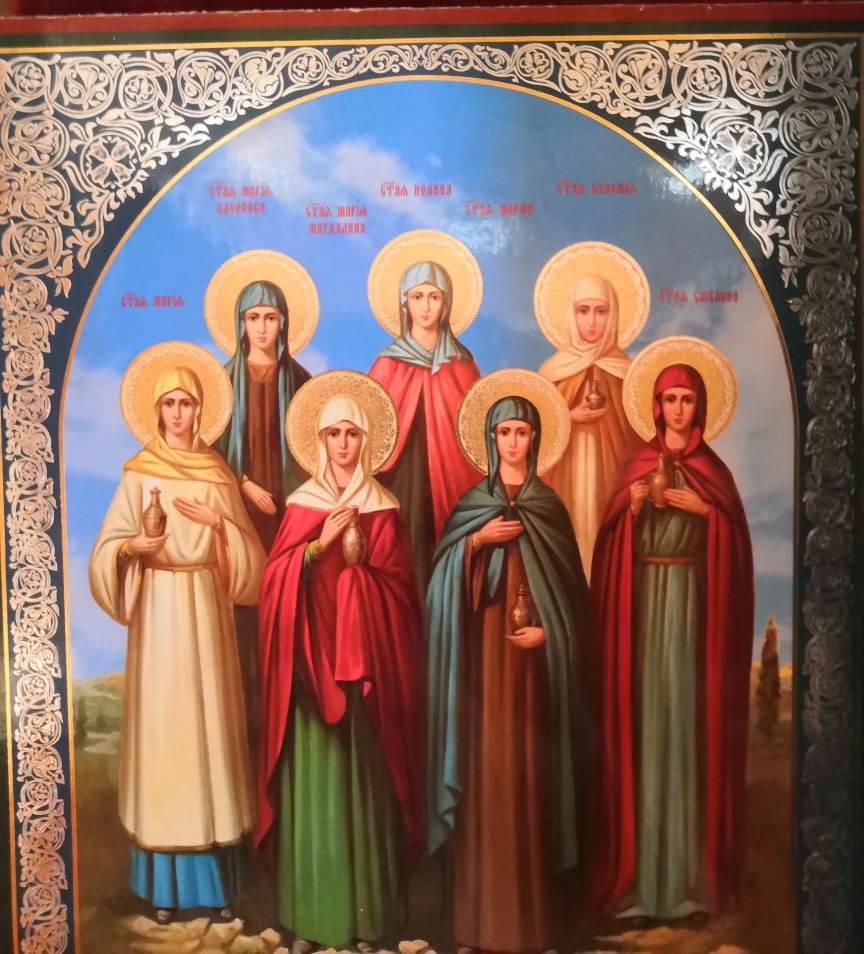 В этот день Православная Церковь чтит женщин – учениц Господа Иисуса Христа – Марию Магдалину, Марию Клеопову, Саломию, Иоанну, Марфу, Марию и иных, последовавших за Ним при жизни и не оставивших места Его погребения после смерти. Именно они первыми удостоились радостной вести о Воскресении Христовом. Это торжество издавна считалось православным женским днем, праздником всех женщин.