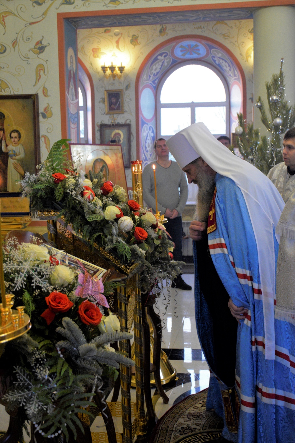 Его Высокопреосвященству сослужили: секретарь Хабаровской епархии иеромонах Николай (Белозеров), клирик Успенского собора иерей Алексей Скорик.