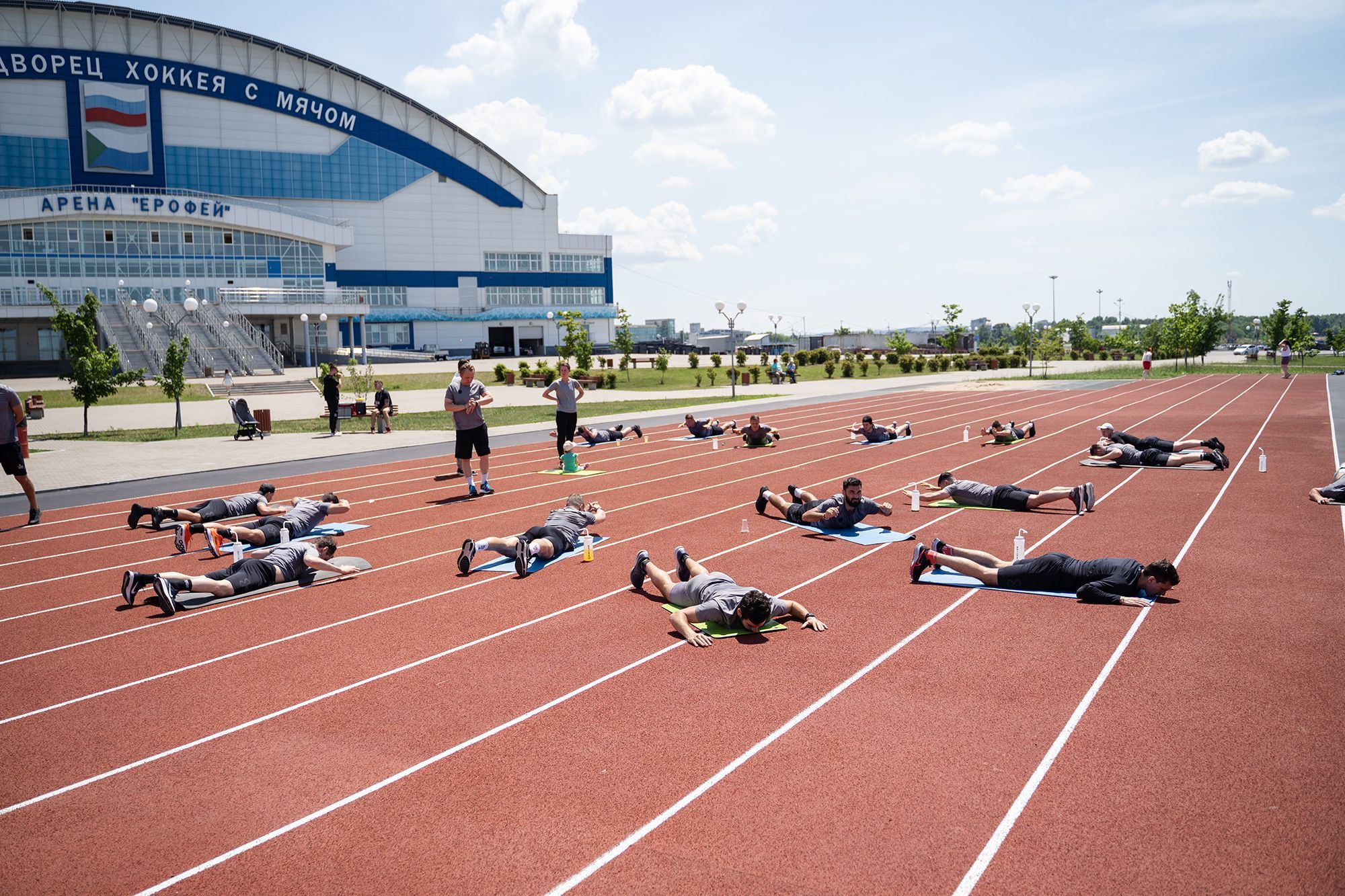 В первый же день спортсмены провели втягивающую тренировку под руководством нового тренера по ОФП Марины Пашкиной.