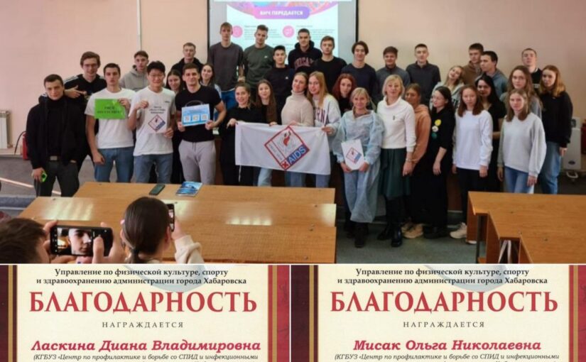 Благодарственные грамоты получили заведующая отделом профилактики краевого Центра АнтиСПИД, врач психиатр-нарколог Ольга Мисак и специалист по работе с молодежью Диана Ласкина от Управления по физической культуре, спорту и здравоохранению администрации города Хабаровска за активное участие в реализации муниципальных проектов, направленных на сохранение здоровья населения краевой столицы.