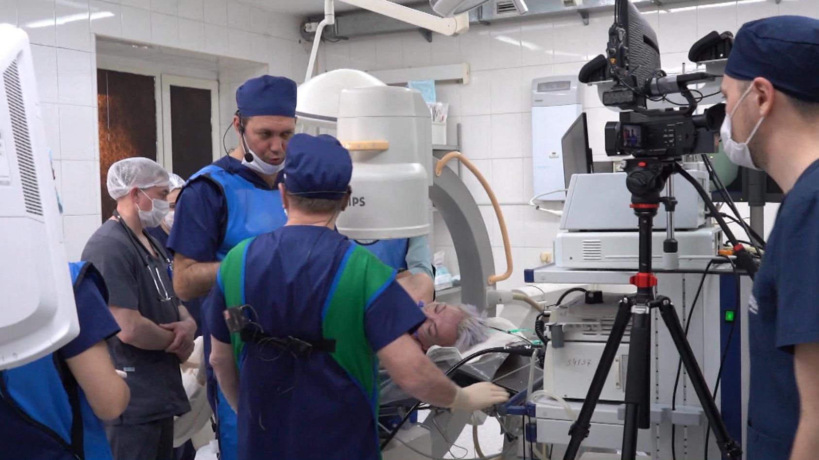 Около двух лет пациентка страдала от болей и высокой температуры. Обследование показало наличие камней в главном панкреатическом протоке. Сегодняшняя операция — уже вторая, её проводит хирург-эндоскопист московской клинической больницы Станислав Будзинский. Врач не только оперирует, но и делится с коллегами своим опытом работы с современным оборудованием.