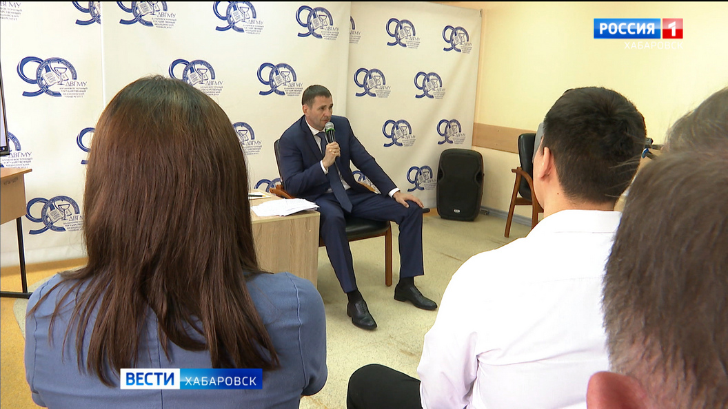 Острую потребность в квалифицированных кадрах испытывает сегодня сфера здравоохранения. Укомплектованность медучреждений в крае – всего 60 процентов. Планы на жизнь и перспективы профессионального роста обсудил Дмитрий Демешин с выпускниками Дальневосточного медицинского университета.