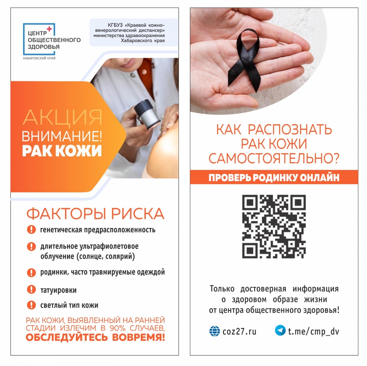 Специалистами Центра общественного здоровья разработан сервис «Проверь родинку онлайн» https://coz27.ru/onkoskrining-online/ ссылка на который (QRкод на информационных буклетах) будет тиражироваться на акции волонтерами-медиками.