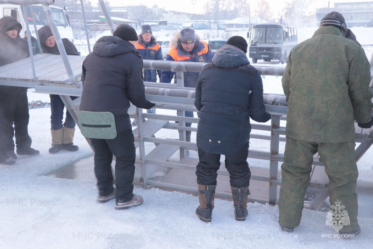 Органами местного самоуправления, религиозными и иными организациями ведется подготовка мероприятий, определяются места для вырубки и установки купелей, помещений для переодевания, горячего чая и т.д. Сотрудники Центра ГИМС Главного управления МЧС России по Хабаровскому краю заблаговременно все места выхода людей на водоемы осмотрят на прочность покрова, отсутствие опасных участков, трещин, майн. Также специалисты дадут рекомендации по максимально возможному нахождению одновременно на ледовом поле людей и обслуживающей техники.