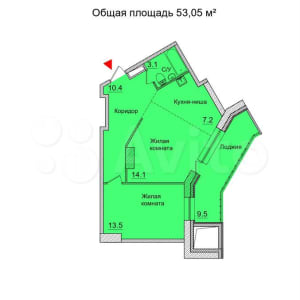 - Общая площадь: 53.1 м²