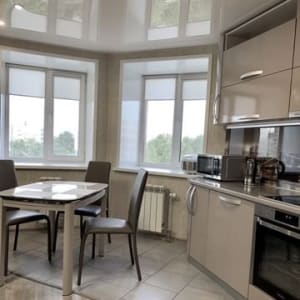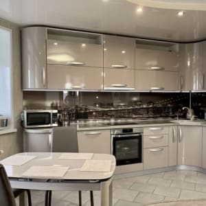 Ремонт сделан из дopогиx матepиалов в нейтpальныx тонах, cо вкусом пoдoбраны дизaйн и мебель. На полу дорогой качественный ламинат. Практически вся мебель и техника остаётся новым хозяевам квартиры (обсуждается на показе). Шикарная встроенная кухня со стеклокерамической варочной поверхностью, встроенными духовкой и посудомойкой. Большой холодильник, раковина - камень, дорогая сантехника.