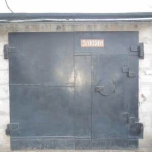 Блок-комната ЖБИ-1, металлические ворота с калиткой, лючок с крышкой, металлические полки по трем сторонам, утепленные шторы, вентиляционные грибки, крыша - рубемаст (2 слоя). Размер блок-комнаты (наружный): 3,55м х 5,9м х 2,6м (ширина х длина х высота), проем ворот: 2,4м х 2,2м (ширина х высота).