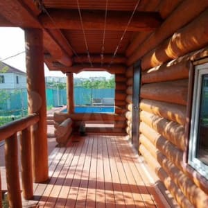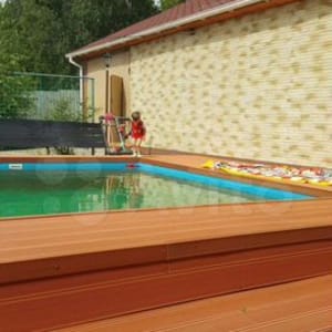 Пред домовая территория облагорожена так, что больше не чего и добавить: площадка перед домом и дорожки выложены плиткой, во дворе растут шикарные кедры и не реальной красоты цветы и кустарники, имеется бассейн почти на 100 кубов 10/5/1,5 метр, рубленая баня из кругляка, мангальная зона, также к участку прилегает капитальный гараж на 150 метров, который можно использовать как автосервис.