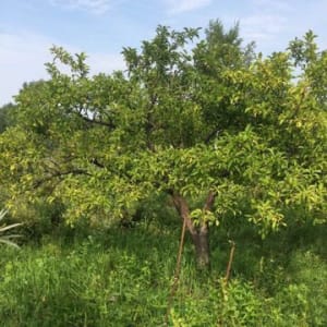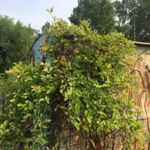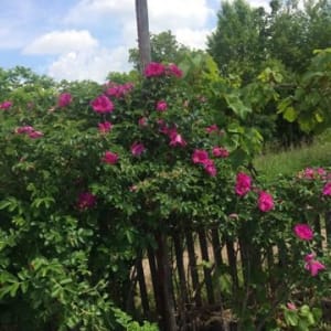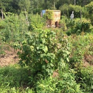 На учacткe имеeтся: cливa, японская айва, лимонник, виноград белый и черный, шиповник, 5 кустов калины, жимолость, роза (красная, белая, чайная), смородина (черная, красная, белая), крыжовник, малина, ежевика, сирень красная, черемуха.
